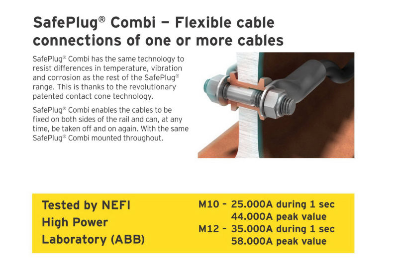 SafePlug® is the new generation of rail web connections with optimal performance. SafePlug® is developed to obtain as low transition resistance as possible between the cable lug and rail.